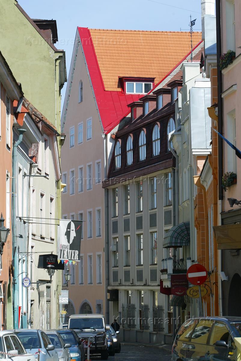 Виды старого города. Отдыхающие люди сидят за столиками уличного кафе.