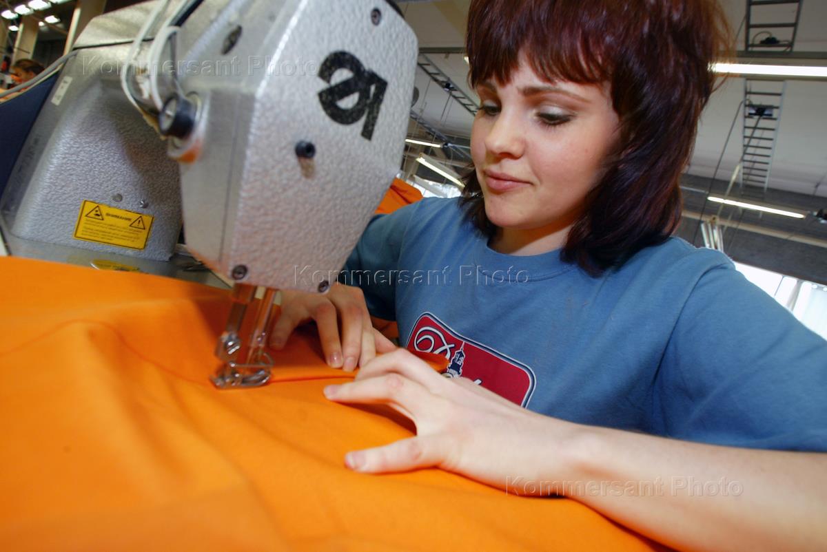 Рабочая в цеху по производству махровых изделий текстильной фабрики "Krenholm" ("Кренгольмская мануфактура").
