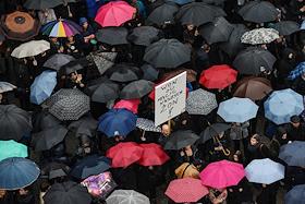 Митинги польских женщин против полного запрета на аборты в стране. Митингующие во время акции протеста.