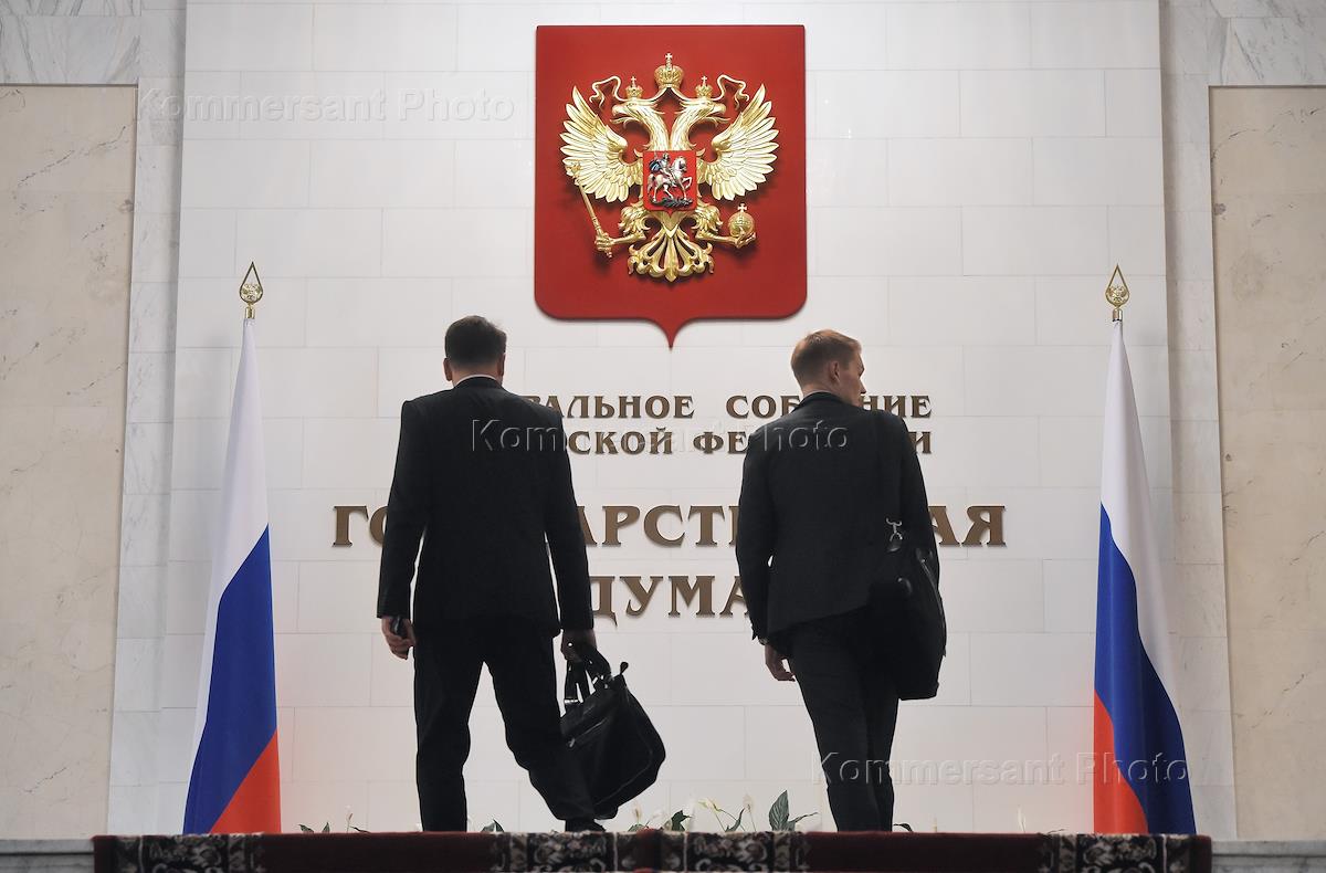 From left to right: Russian Presidential Press Secretary Dmitry Peskov, Head of the Foreign Intelligence Service (FIS) Sergei Naryshkin and Russian President Vladimir Putin attend the first meeting of the Russian State Duma of the new convocation.