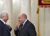 Торжественная церемония открытия V саммита Культурного форума мировых городов в Белом зале мэрии. Заместитель мэра Москвы по вопросам социального развития Леонид Печатников (слева) и специальный представитель президента России по международному культурному сотрудничеству Михаил Швыдкой (справа) во время саммита.