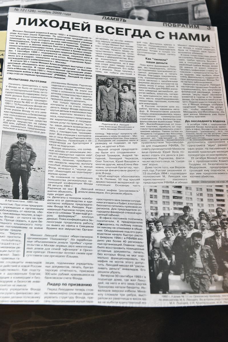 Центр восстановительной терапии для воинов —интернационалистов им. М. А. Лиходея. Жанровая фотография. Газетная вырезка статьи от 2009 года "Лиходей всегда с нами".