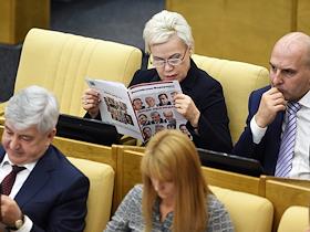 Заседание Государственной думы (ГД) России. Первый заместитель председателя комитета ГД по федеративному устройству и вопросам местного самоуправления Ирина Гусева во время заседания.