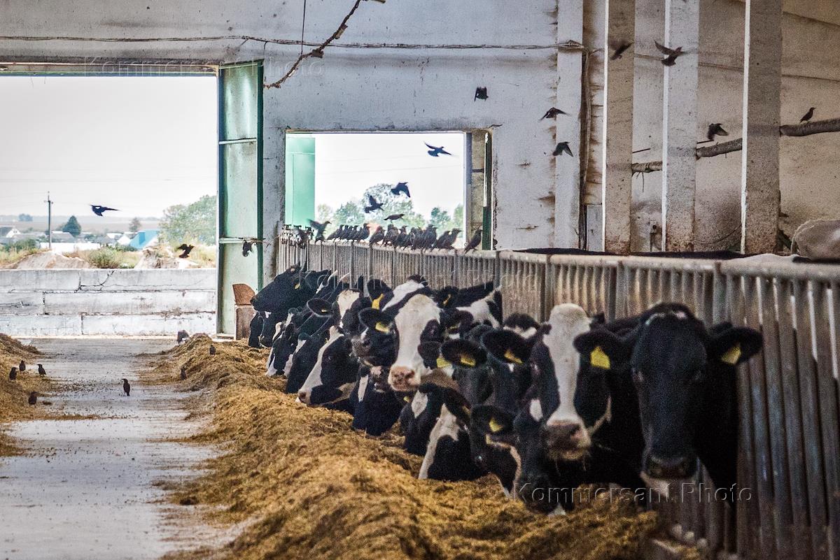 Агропромышленный комплекс, сельское хозяйство Белоруссии. Жанровая фотография. Коровы во время кормления.