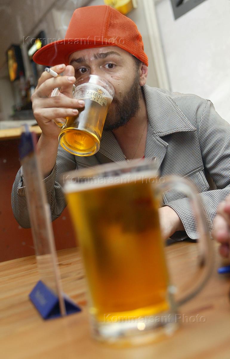 Солист группы "Ленинград" Сергей Шнуров во время пресс-конференции, посвященной конфликту между группой "Ленинград" и компанией "Гала-Рекордс". Пресс-конференция состоялась в клубе "Б — 2".