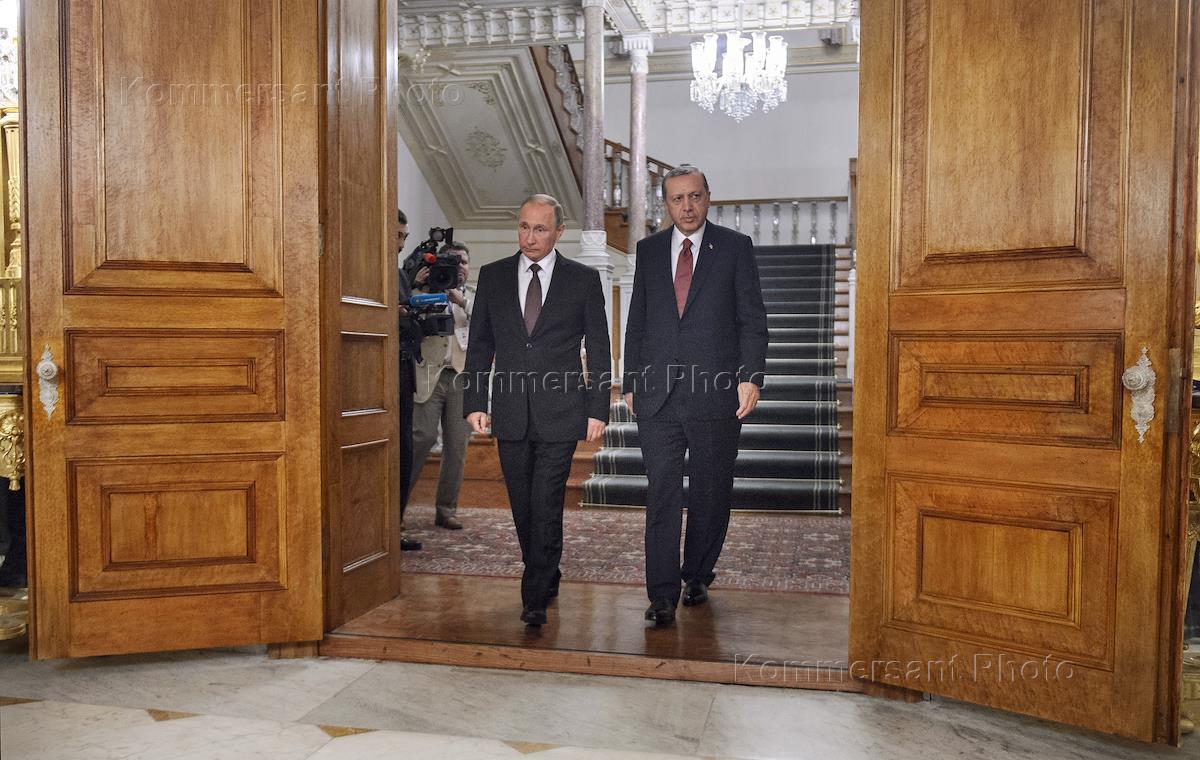 Рабочая поездка президента России Владимира Путина в Турцию. Президент России Владимир Путин (слева) и президент Турции Реджеп Тайип Эрдоган (справа) во время встречи.