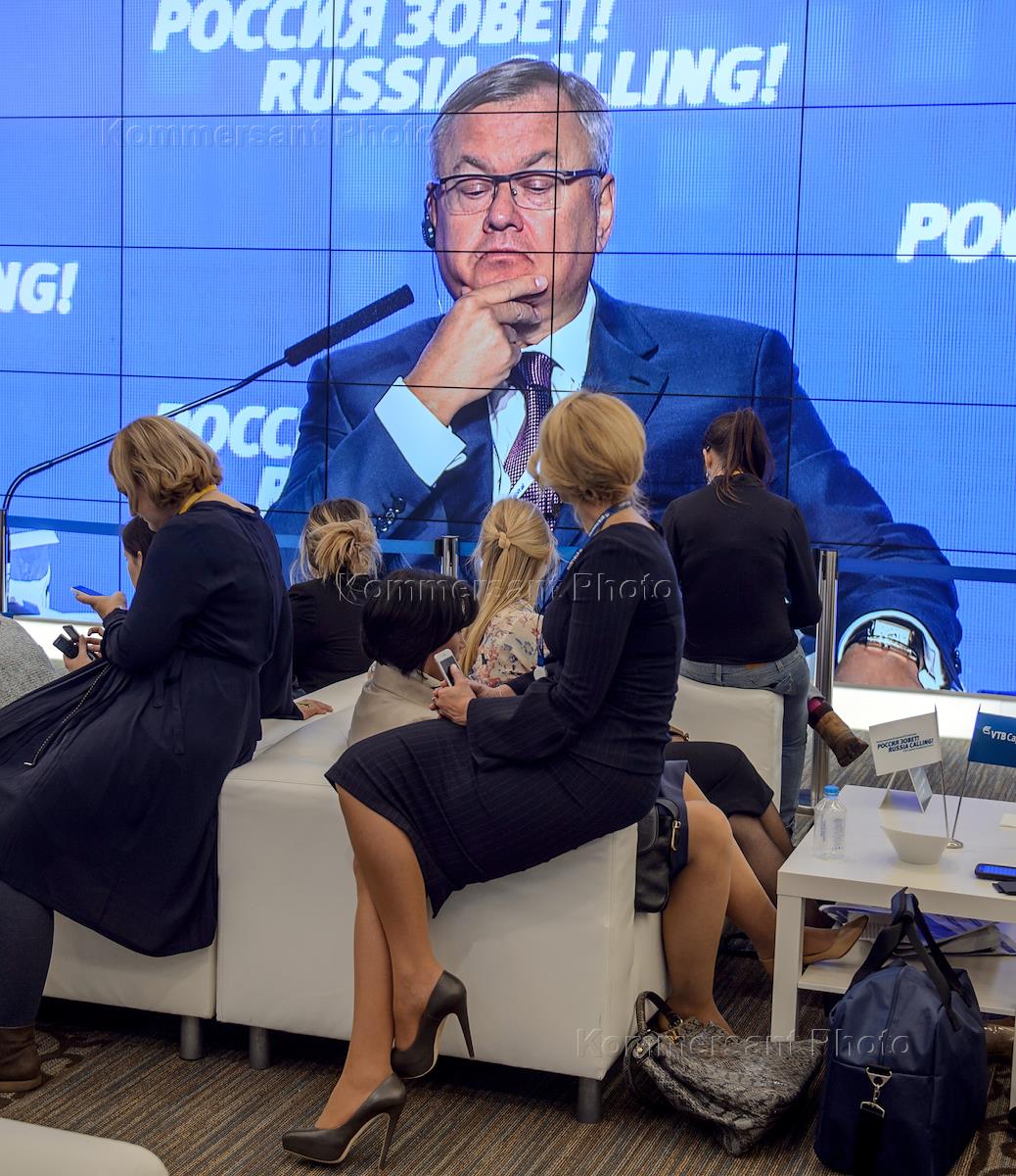 VTB Bank President and Board Chairman Andrey Kostin participates in the plenary session during the VTB Capital Russia Calling! Investment Forum.
