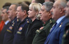 Слет членов Московского регионального отделения Всероссийского военно-патриотического движения "Юнармия". Слет прошел в Большом концертном зале Московского городского Дворца детского (юношеского) творчества. Референт Контрольного управления президента России Светлана Хоркина (в центре) во время церемонии открытия слета.