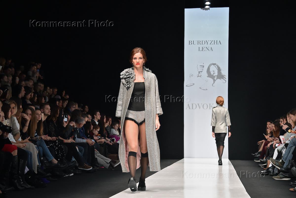 Неделя моды Mercedes-Benz Fashion Week Russia в Центральном Выставочном зале. Модель во время демострации коллекции дизайнера LENA BURDUZHA.