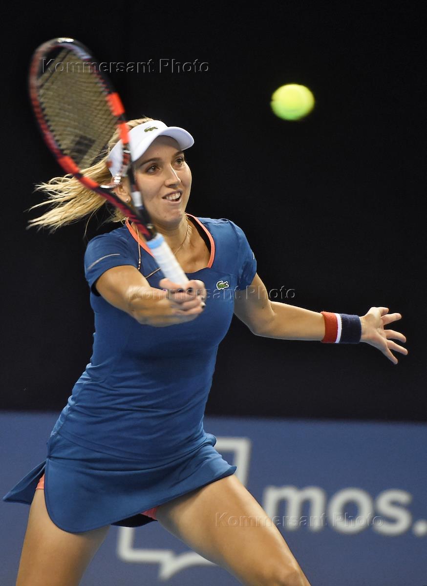 XXVII Международный теннисный турнир "Кубок Кремля" прошел в спорткомплексе "Олимпийский". Российская теннисистка Елена Веснина во время матча первого круга женского парного разряда.