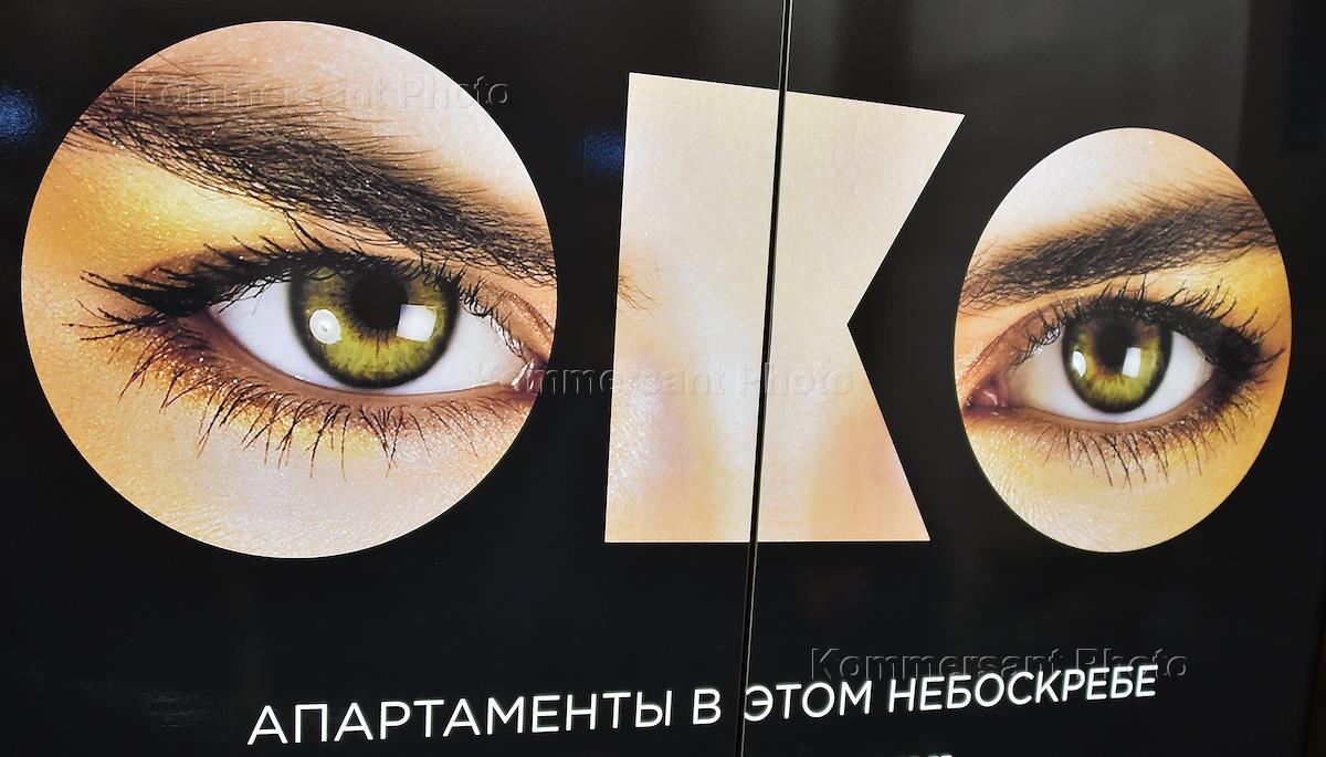 Небоскреб "ОКО" Московском международном деловом центре (ММДЦ) "Москва Сити". Реклама.