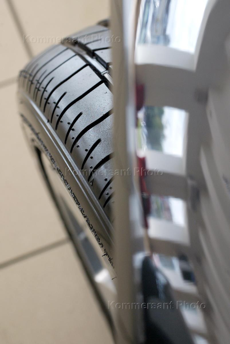 Презентация автомобиля "Audi - A 8 Long" в "Audi Центре" на Хорошевском шоссе. Руль с эмблемой автомобильной фирмы.