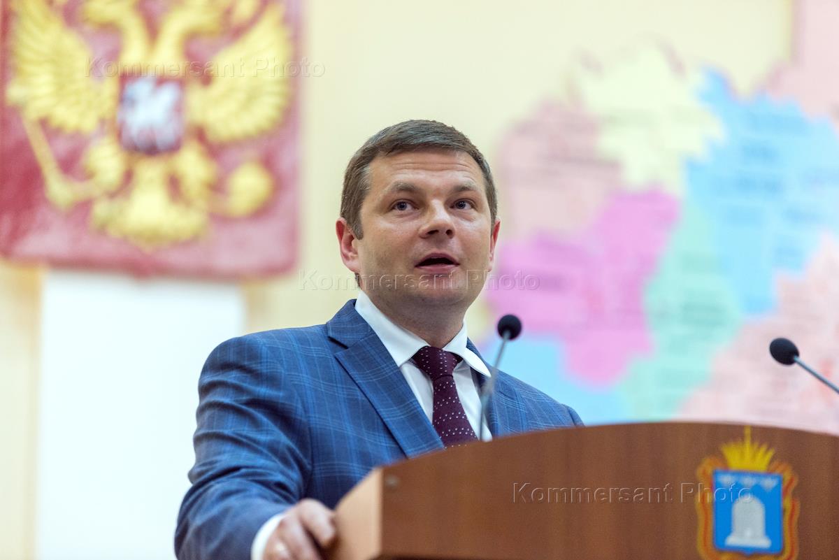 Acting governor of the Tambov region Aleksanr Nikitin is at his presentation.