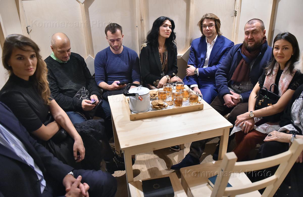 Фестиваль-школа "Территория". Показ документального проекта Мастерской Дмитрия Брусникина "До и после" в Новом Пространстве/New Space Театра Наций. Член Совета директоров ПАО "СИБУР Холдинг" Кирилл Шамалов (второй справа) и актриса Светлана Светличная (справа) во время мероприятия.