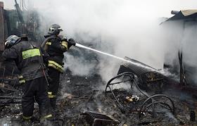 Пожар на Ленинградском шоссе, 71. Пожарные во время локализации места пожара.