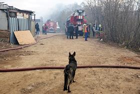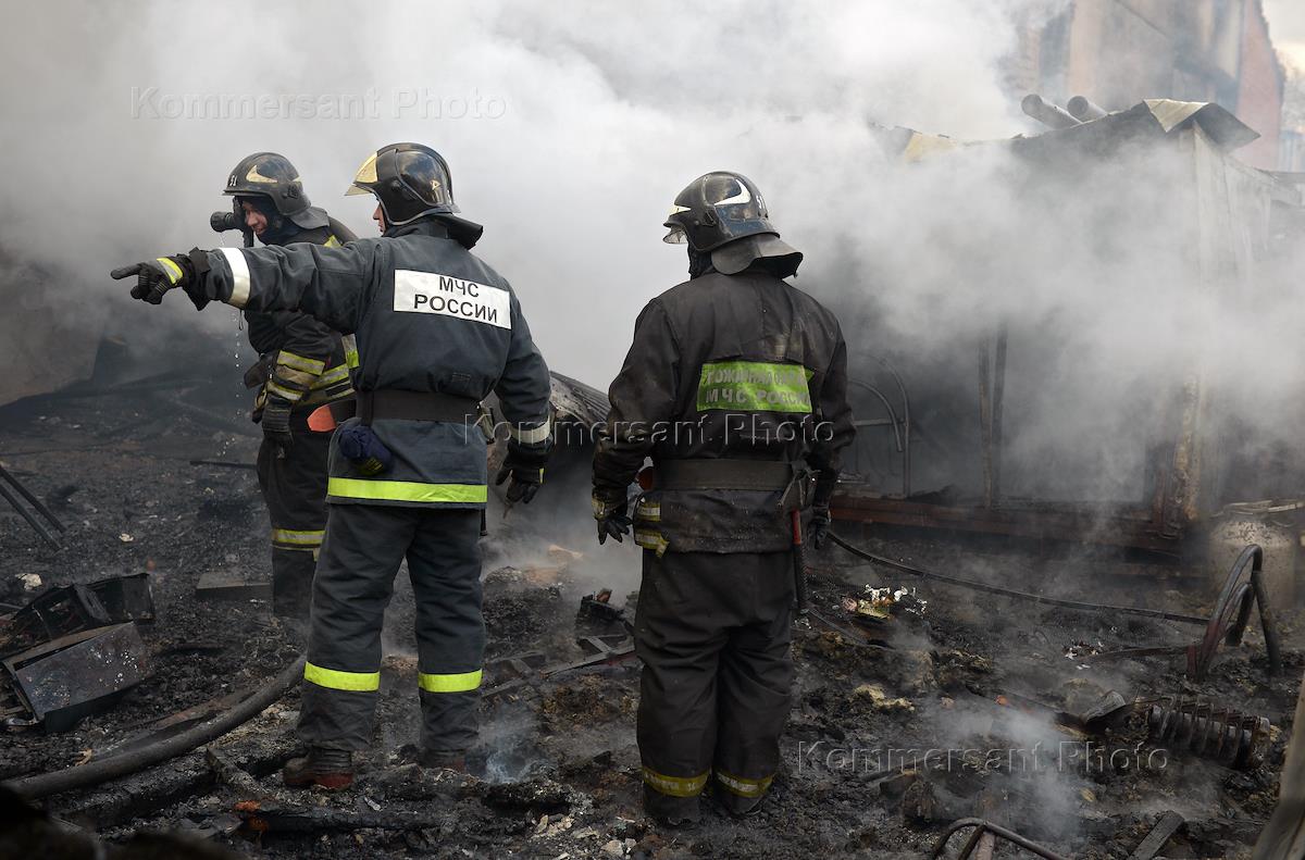 Пожар на Ленинградском шоссе, 71. Сотрудники МЧС во время локализации места пожара.