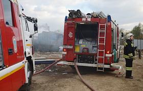 Пожар на Ленинградском шоссе, 71. Пожарная техника вблизи места пожара.