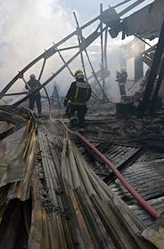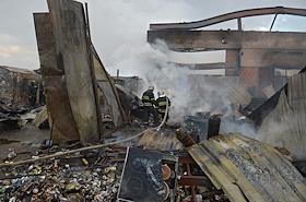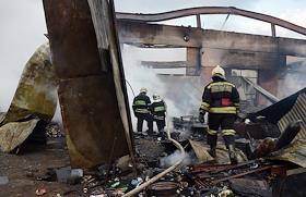 Пожар на Ленинградском шоссе, 71. Складское помещение после локализации места пожара.