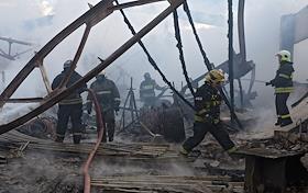 Пожар на Ленинградском шоссе, 71. Складское помещение после локализации пожара.