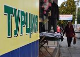 Жанровая фотография. Уличная торговля одеждой с вывеской "Турция".