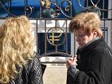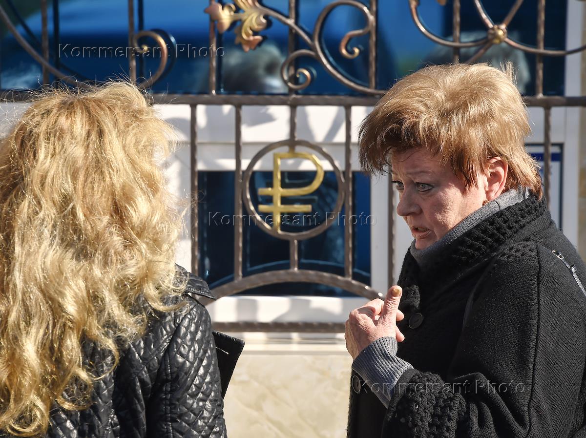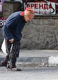 Жанровая фотография. Пожилая женщина на фоне рекламы аренды помещения.