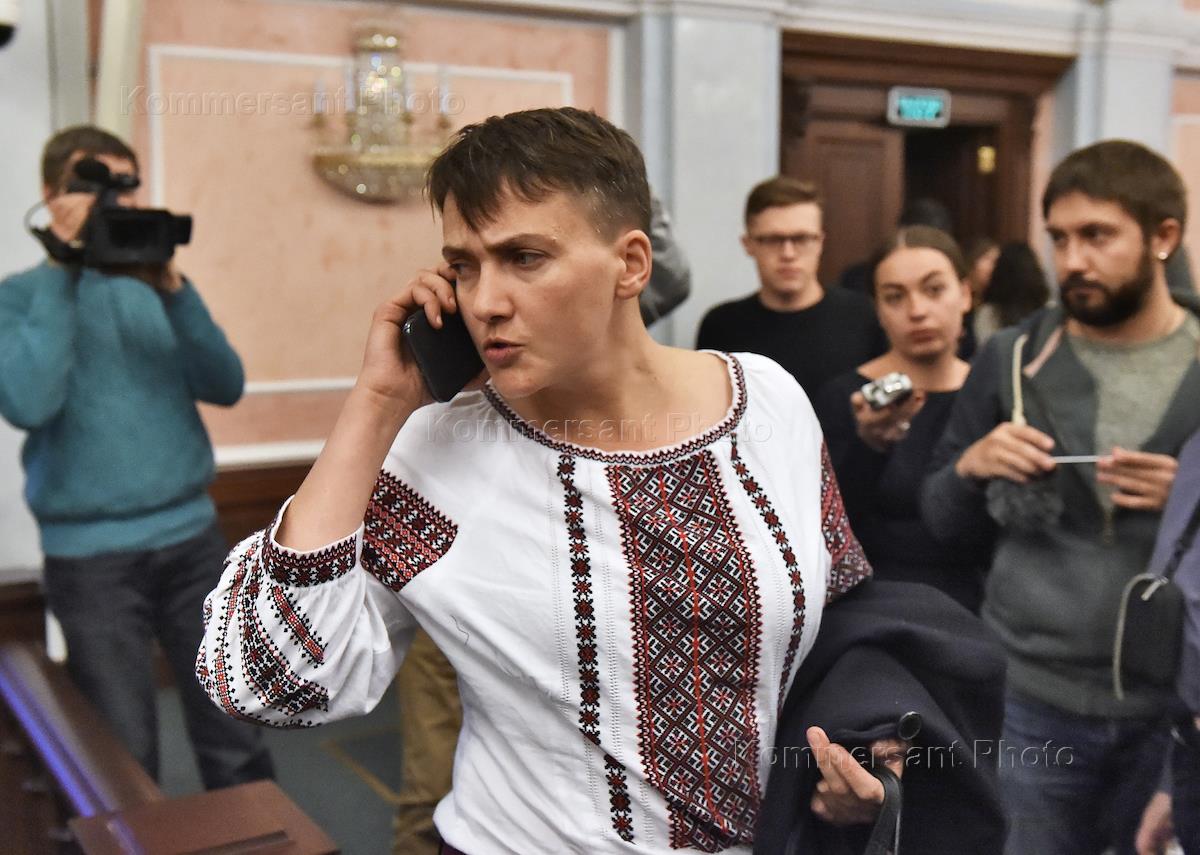 Народный депутат Верховной Рады Украины Надежда Савченко во время пребывания в Верховном суде России, где рассматривается апелляционная жалоба на приговор двум гражданам Украины - членам запрещенной в России националистической организации УНА-УНСО Николаю Карпюку и Станиславу Клыху, обвиняемым в участии в военных действиях на территории Чечни в 1994-1995 годах.