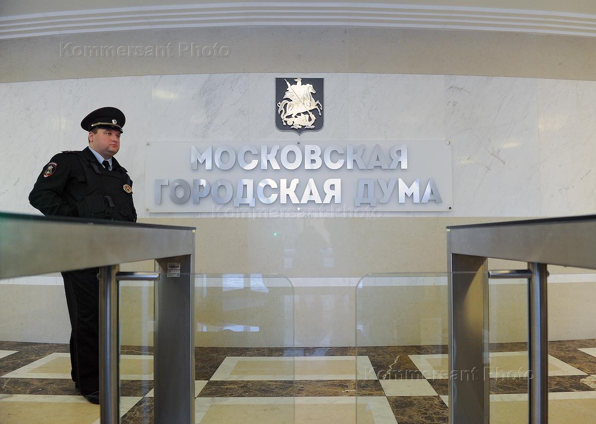 Жанровая фотография. Сотрудник полиции во время дежурства на входе в здание Московской городской думы.