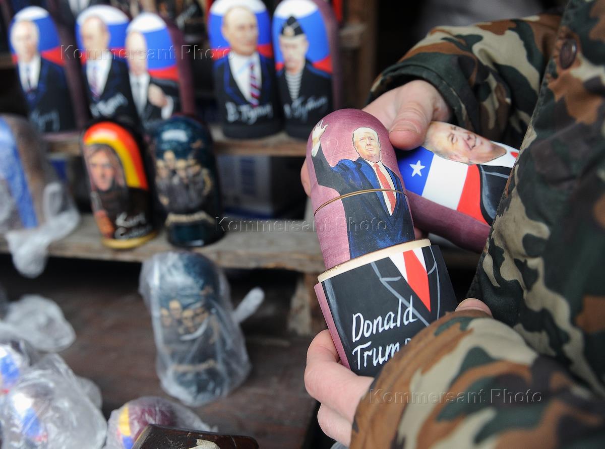 Жанровая фотография. Матрешки с изображенем Владимира Путина и Дональда Трампа.
