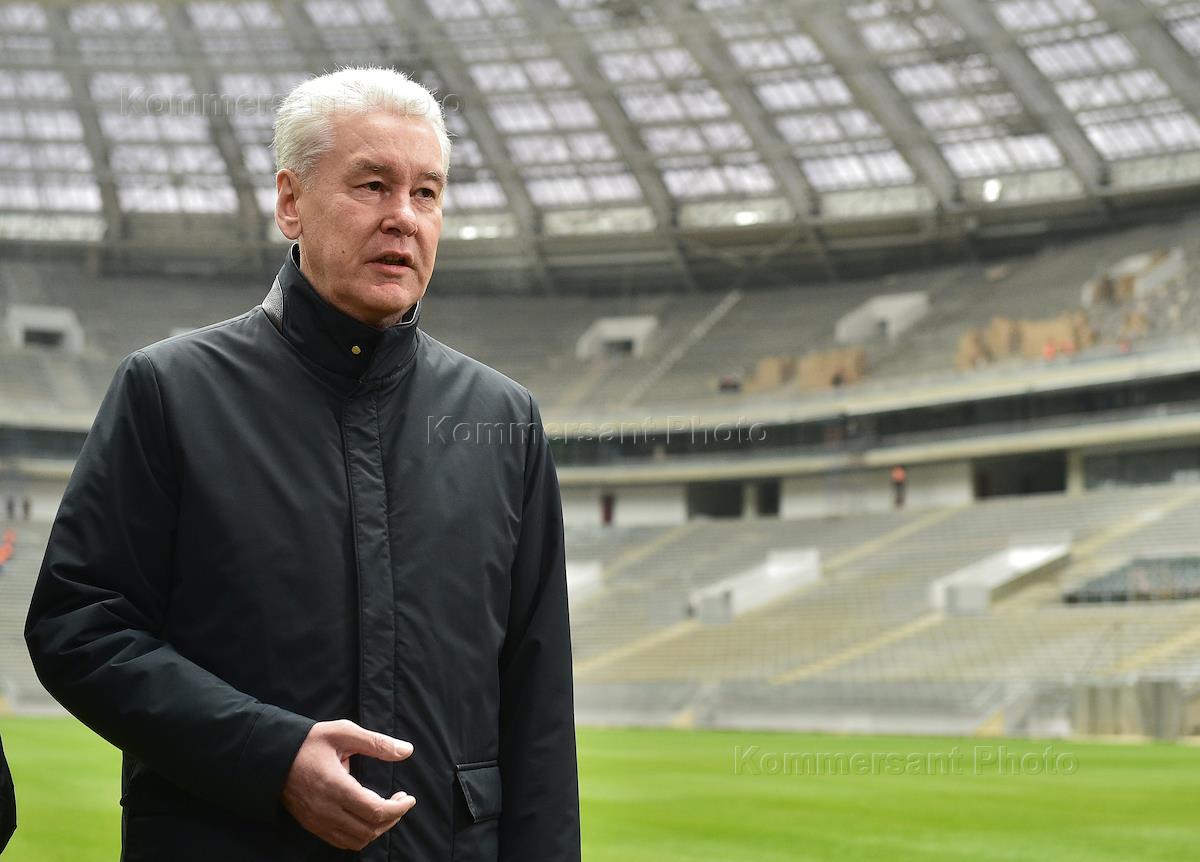 Мэр Москвы Сергей Собянин во время осмотра хода работ по реконструкции спорткомплекса "Лужники".
