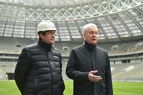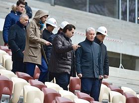 Мэр Москвы Сергей Собянин (справа) во время осмотра хода работ по реконструкции спорткомплекса "Лужники".