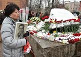 Митинг в День памяти жертв политических репрессий. Участница митинга у памятника жертвам репрессий "Соловецкий камень" во время возложения цветов.