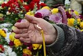 Митинг в День памяти жертв политических репрессий. Участница митинга со свечой у памятника жертвам репрессий "Соловецкий камень".