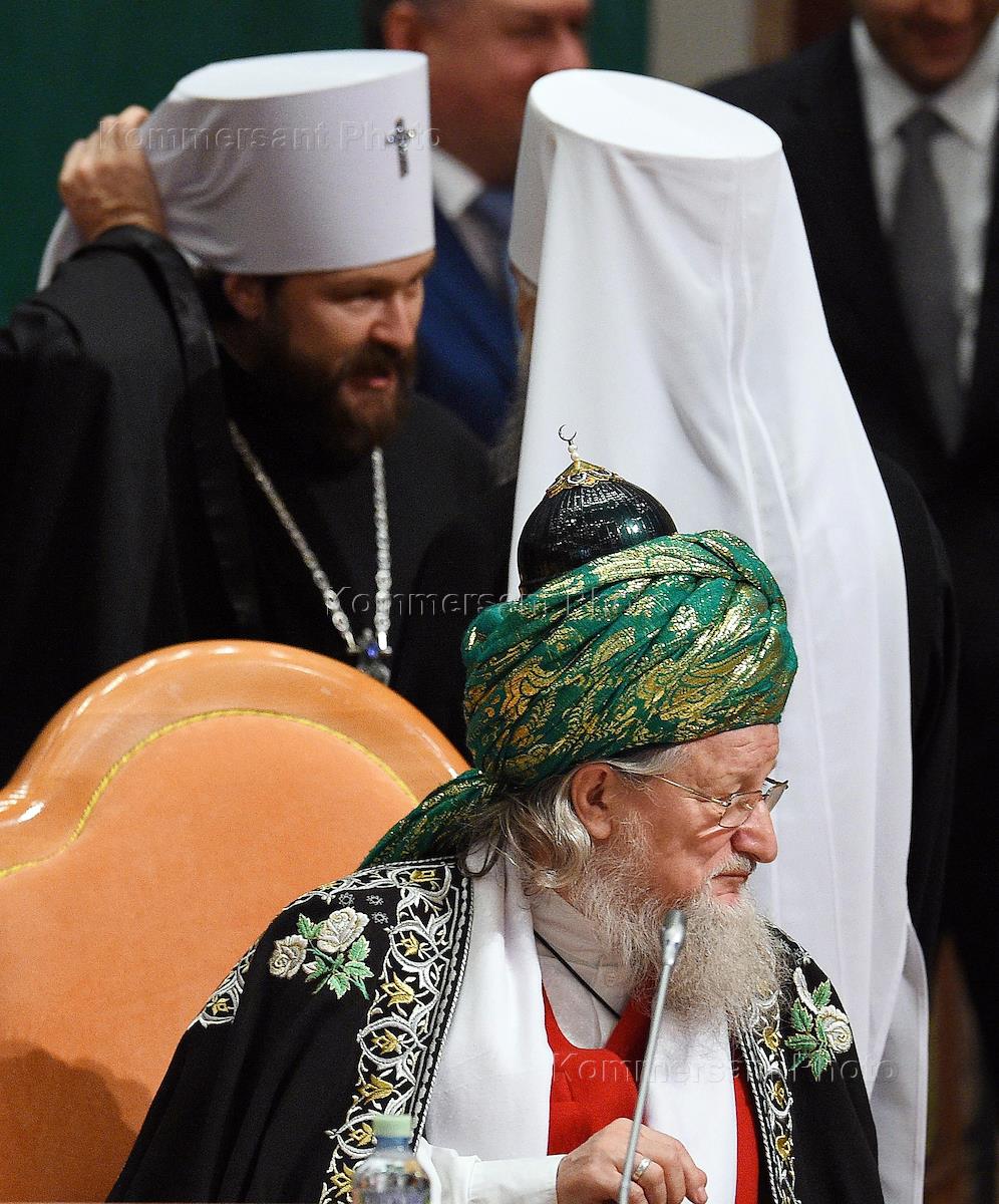 XX Всемирный русский народный собор в храме Христа Спасителя. Верховный муфтий России и европейских стран СНГ Талгат Таджуддин (справа) и председатель Отдела внешних церковных связей Московского Патриархата архиепископ Волоколамский (слева) перед началом заседания.