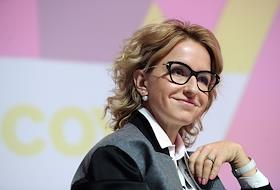 RIW 2016 (Russian Interactive Week 2016) в Экспоцентре на Красной Пресне. Заместитель главы "Национальной медиагруппы" Елена Верман во время выставки.