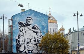 Виды Москвы. Изображение Памятника воинам Советской Армии в Трептов-парке в Берлине на жилом доме.