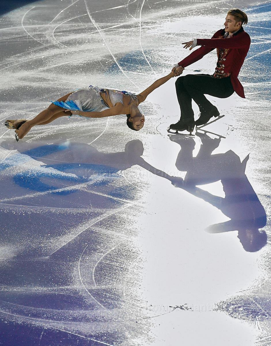 Гран-при "Кубок Ростелеком"-2016 по фигурному катанию. День 3. Фигуристы Лоуренс Фурнье Бодри и Николай Соренсен (Дания) во время показательных выступлений.