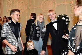 VI Бал Дебютанток журнала Tatler прошел в Колонном зале Дома Союзов. Фигурист Евгений Плющенко (справа), его супруга, продюсер Яна Рудковская (в центре), их сын Александр (второй слева) и сын Яны Рудковской Николай Батурин (слева) во время бала.