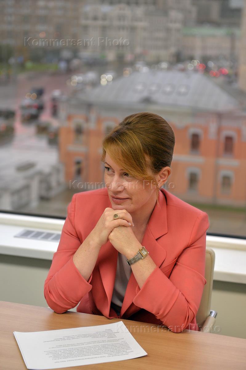 Руководитель дирекции обслуживания и финансирования корпоративных клиентов, член правления "Райффайзенбанк" Оксана Панченко во время интервью.