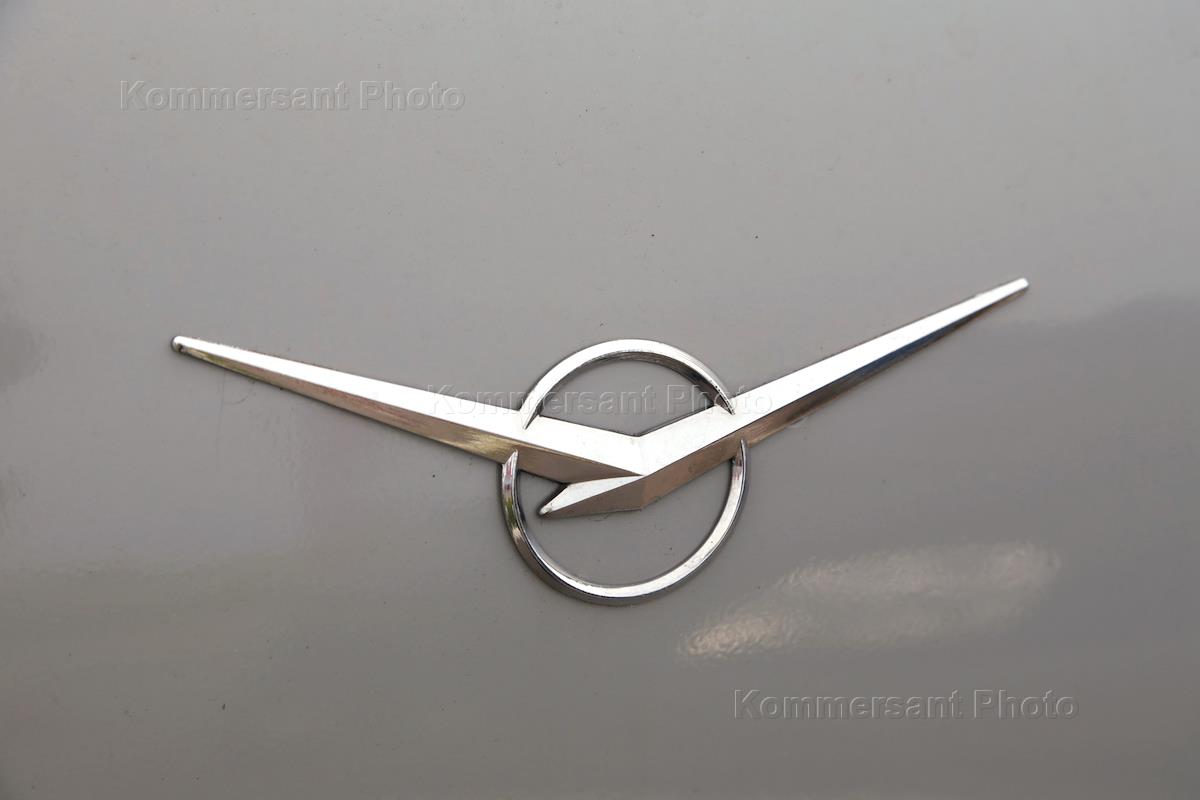 Автосалон УАЗ. Автомобили перед автосалоном и эмблема марки УАЗ.