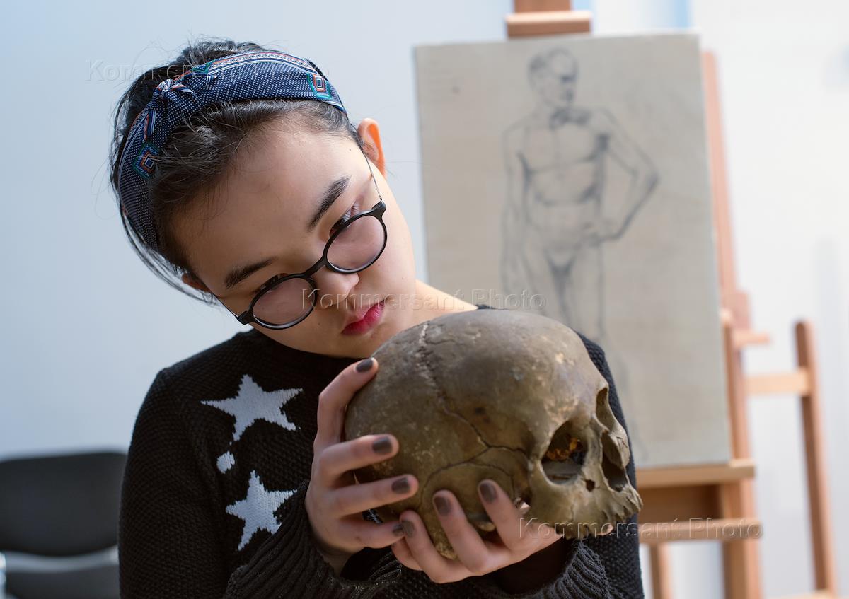 Жанровая фотография. Студенты во время занятий Медальерного класса Санкт-Петербургского государственного академического института живописи, скульптуры и архитектуры имени И.Е. Репина при Российской академии художеств.