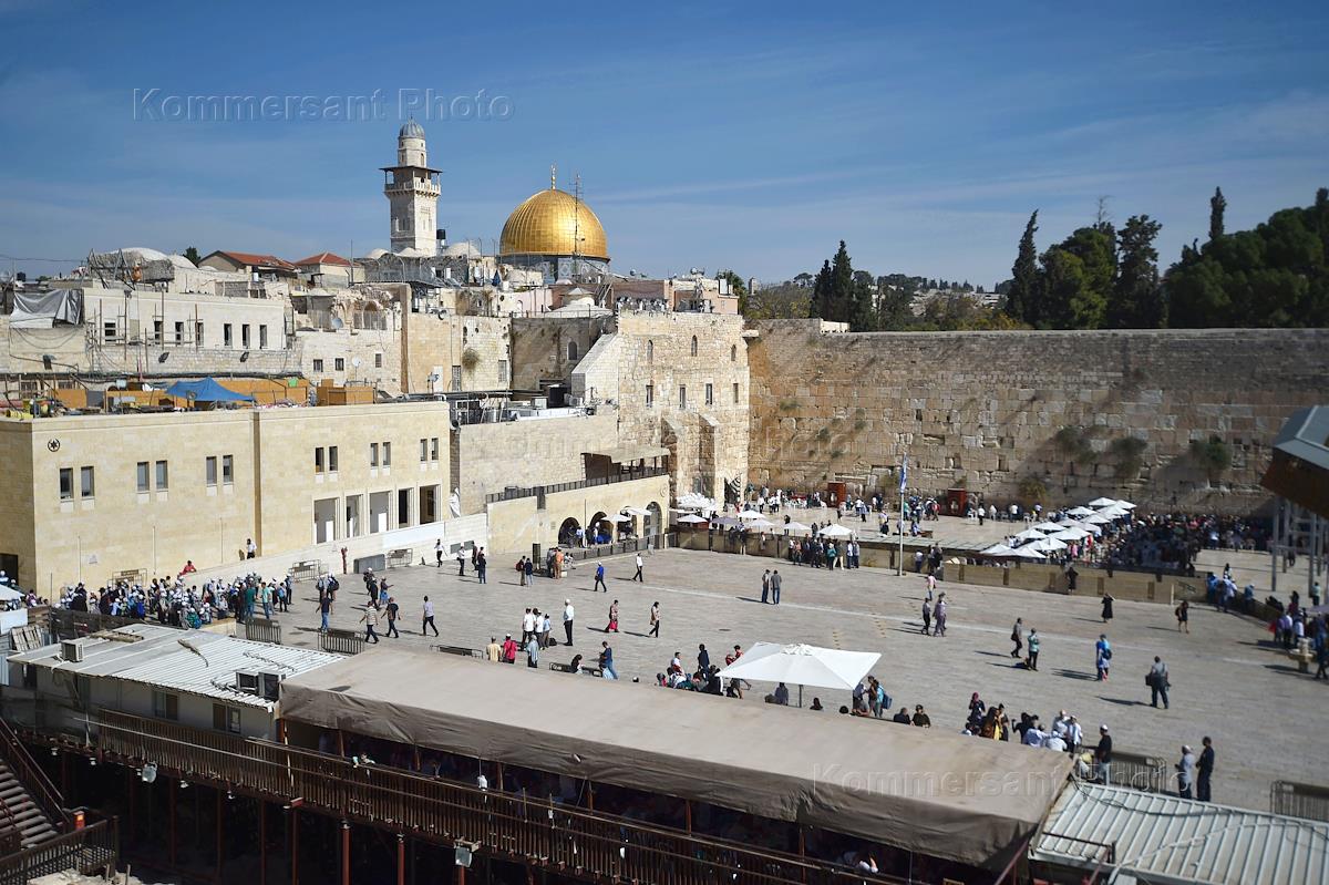Russian Prime Minister Dmitry Medvedev touching the Wailing Wall in Jerusalem during his official visit to Israel.