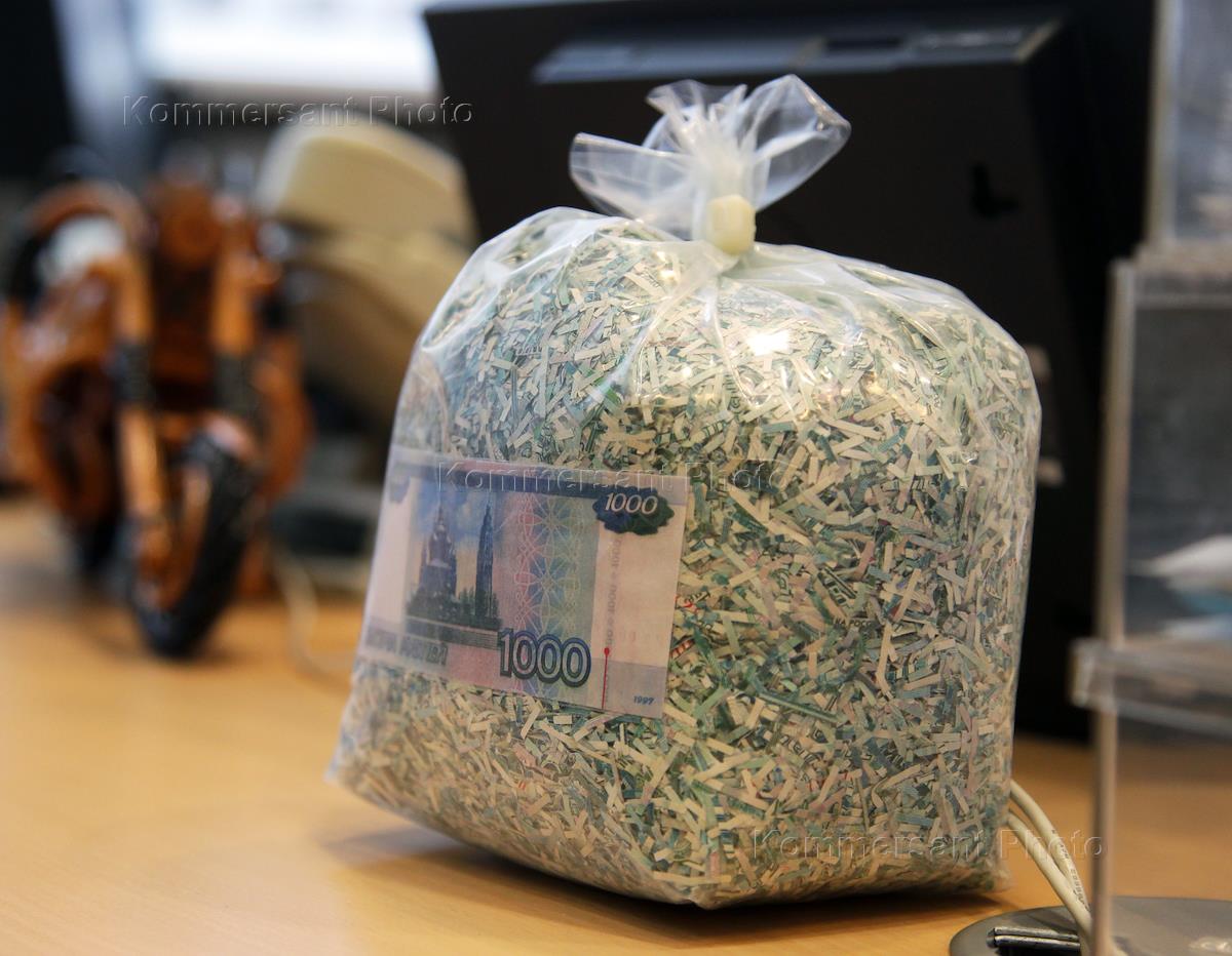 Упаковка ЦБ РФ с выведенными из оборота тысячерублевыми купюрами на сумму в 1 миллион рублей после утилизации.