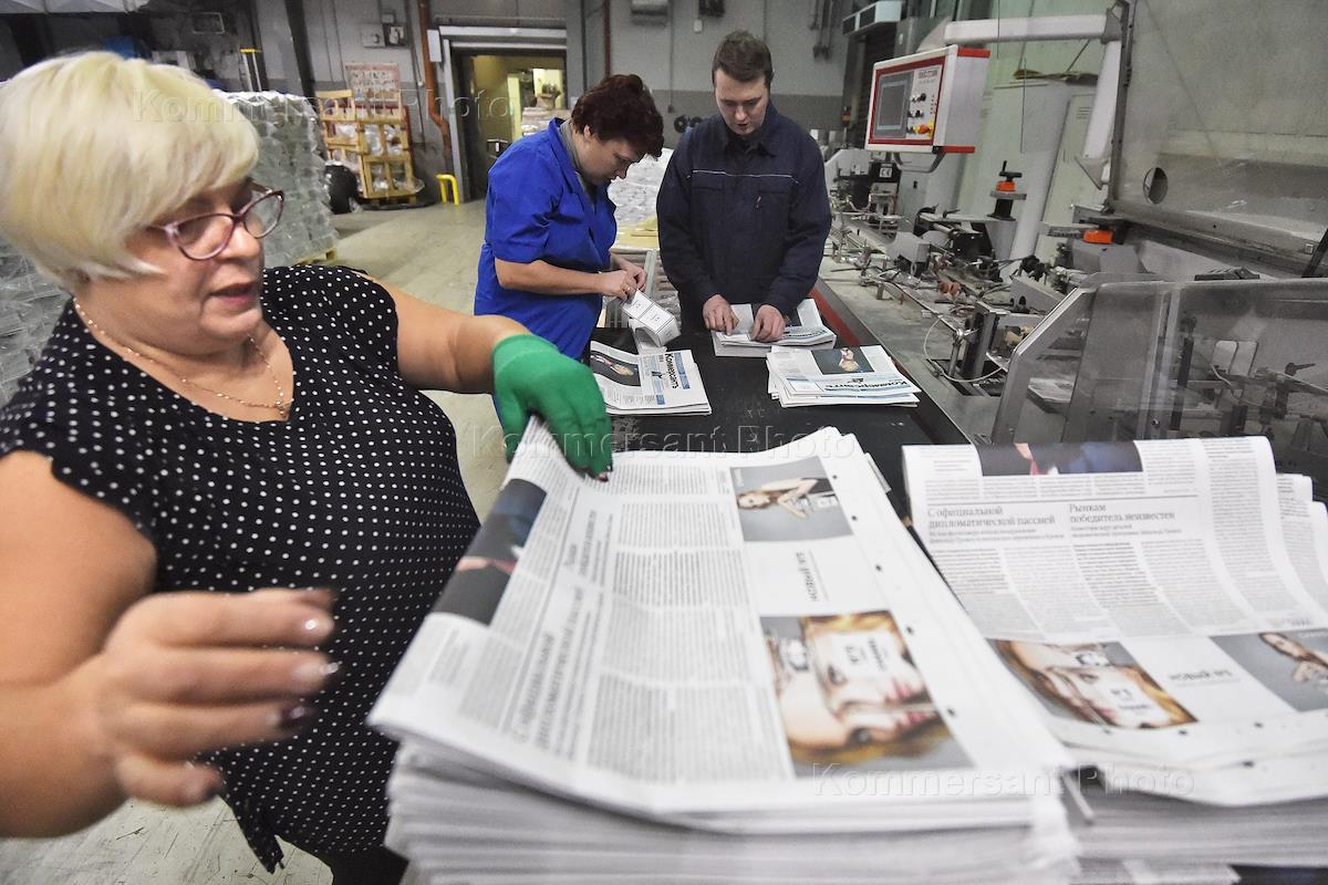 The printing process of Kommersant newspaper edition featuring the image of President-elect of the United States Donald Trump.