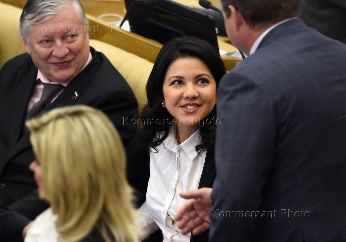 Пленарное заседание Государственной думы (ГД) России. Член комитета ГД России по вопросам семьи, женщин и детей Инга Юмашева (в центре) во время заседания.