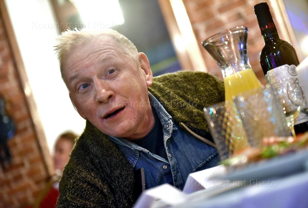 Музыкальный вечер в формате "квартирник" "Время легенд", организованный издательским домом "Коммерсантъ - Санкт-Петербург". Актер Евгений Александров на вечере.