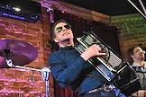 Первый музыкальный вечер в формате "квартирник" "Время легенд", организованный Издательским домом "Коммерсантъ" (Санкт-Петербург). Музыкант, автор песен, актер, шоумен группы "АукцЫон" Олег Гаркуша (слева) на вечере.