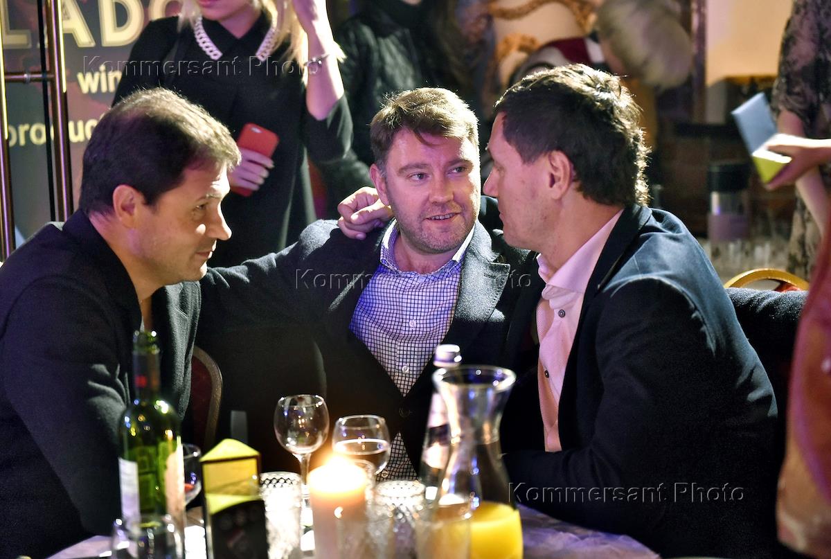 Музыкальный вечер в формате "квартирник" "Время легенд", организованный издательским домом "Коммерсантъ - Санкт-Петербург". Слева направо: председатель Совета директоров группы компаний "СК "Прагма" Денис Литов, совладельцем и вице-президентом Холдинговой компании "Адамант" Михаил Баженов и управляющий партнер УК "Теорема" Игорь Водопьянов на вечере.