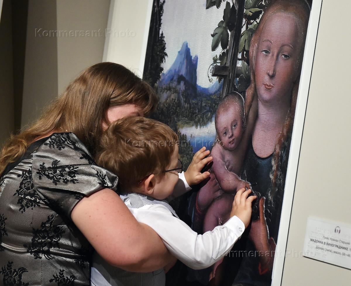 Церемония открытия выставки "Видеть невидимое" (первая в России выставка тактильных картин для слепых и слабовидящих людей) состоялась в Государственном музее изобразительных искусств (ГМИИ) имени А.С.Пушкина.