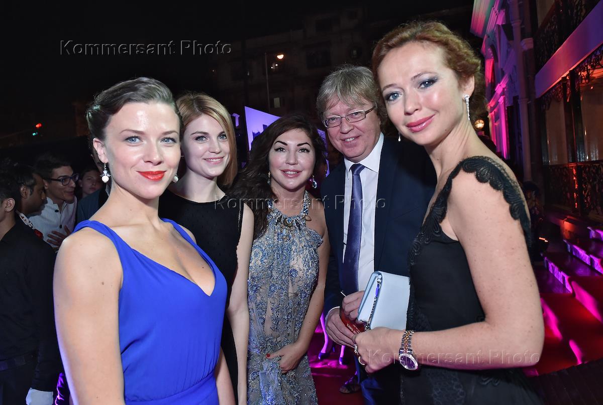 Кинофорум "Дни российского кино в Мумбаи". Российские актрисы Ольга Филимонова (слева), Елена Захарова (справа), редакционный директор российской версии журнала The Hollywood Reporter, кинообозреватель Мария Лемешева (в центре) и заместитель председателя Союза кинематографистов России Олег Иванов (второй справа) во время первого дня кинофорума.
