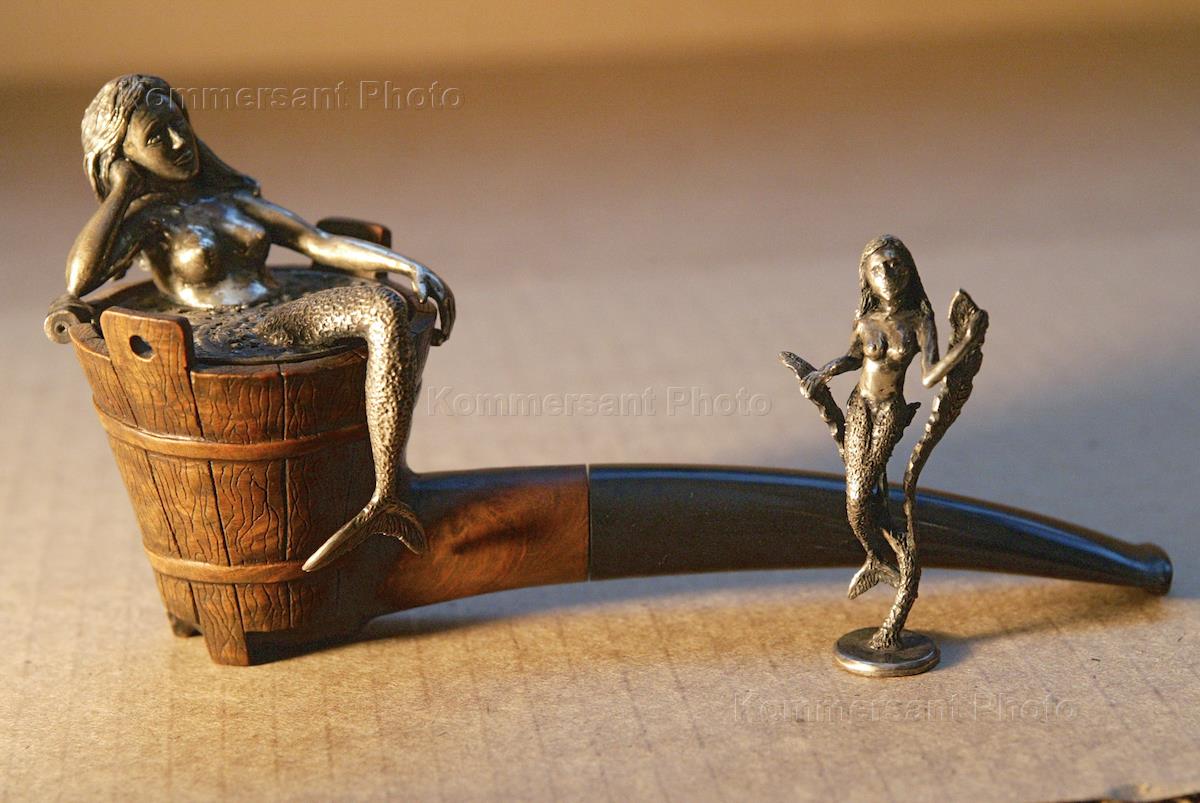 Exclusive smoking pipes, produced by the Silver Leaf Studio, put on display in the Mir Tabaka ('Tobacco World') shop.